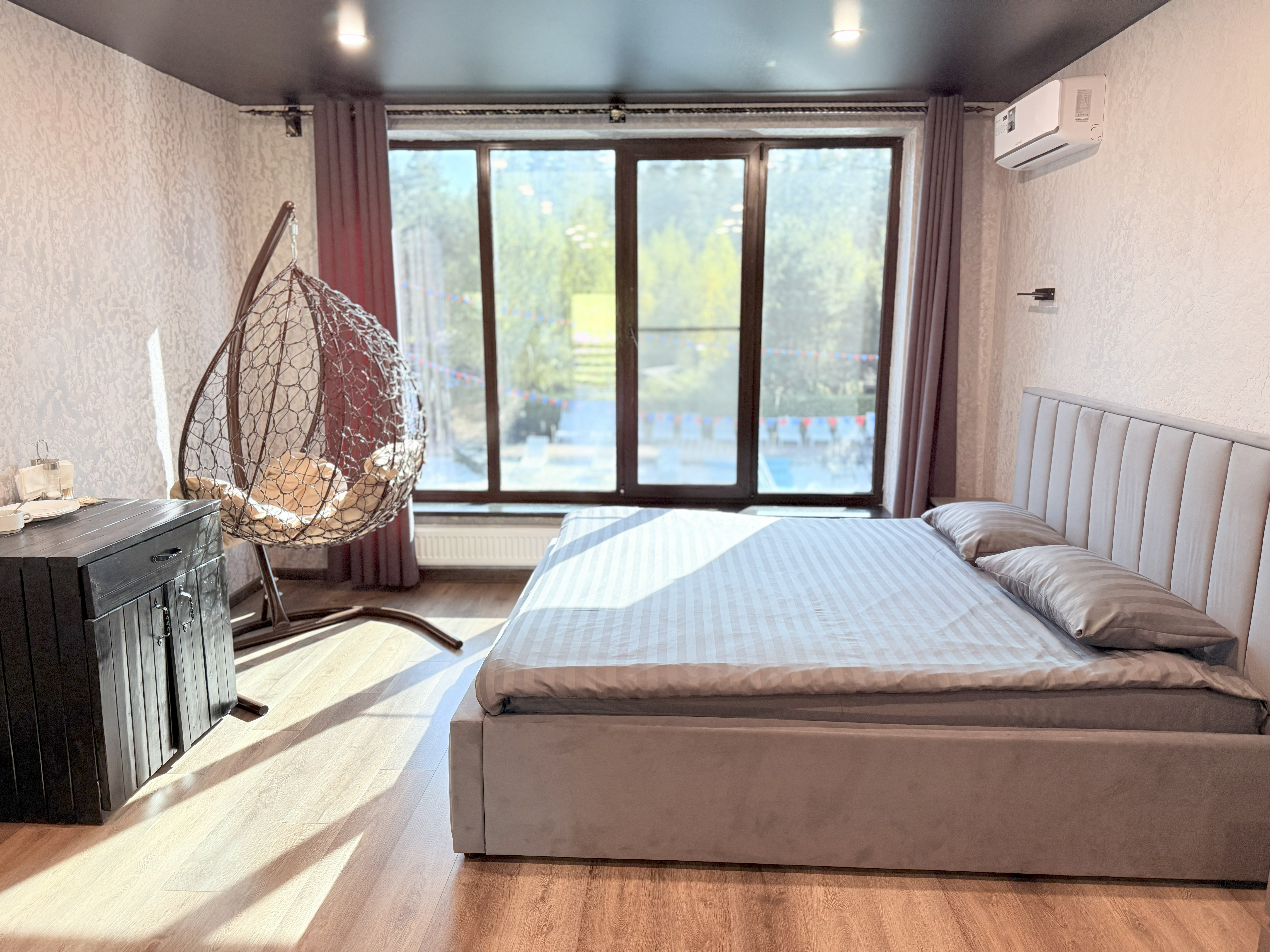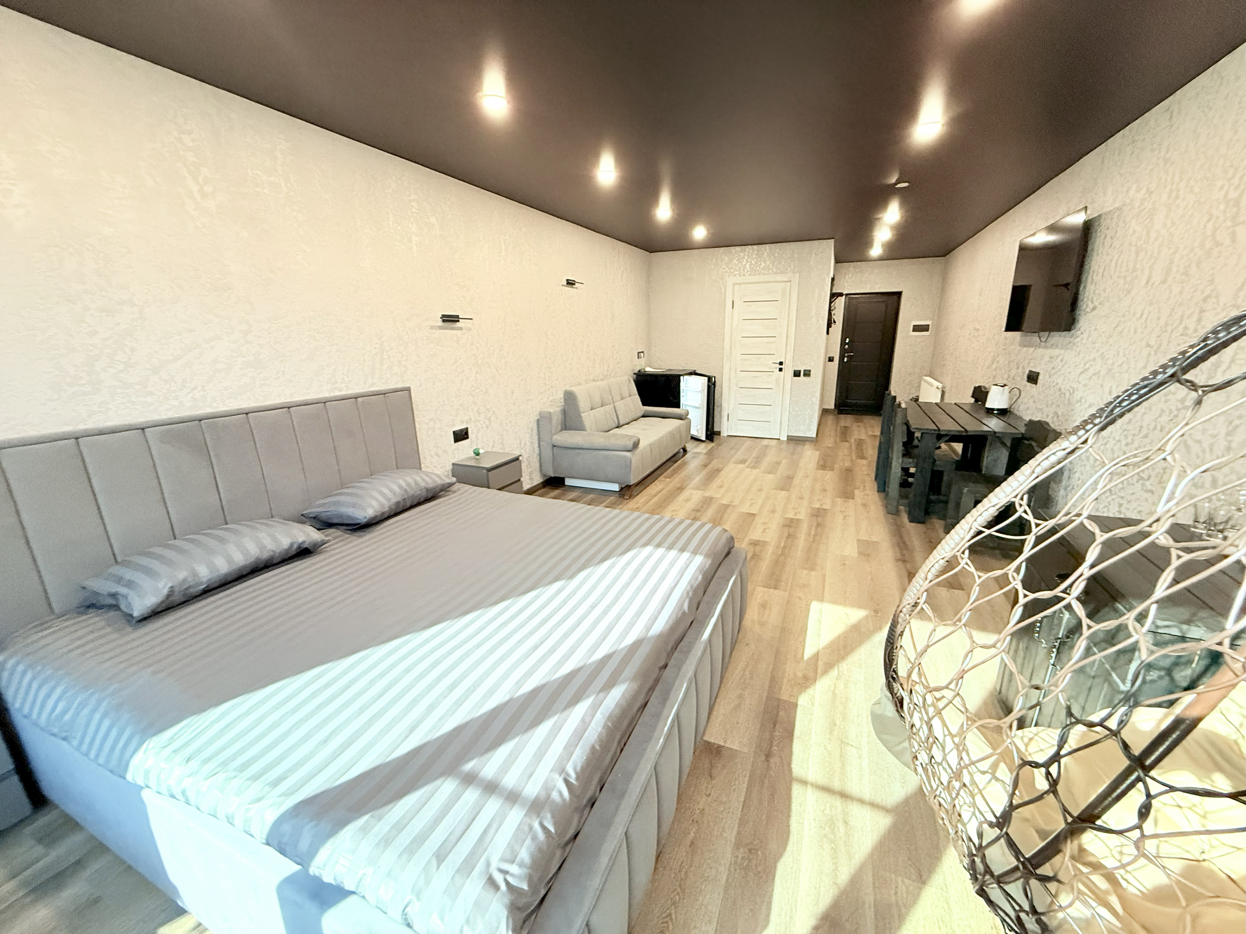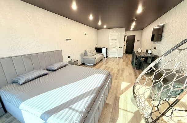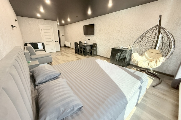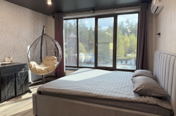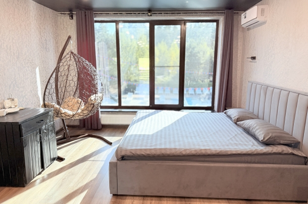 Мы продумали все до мелочей, чтобы ваш отдых был ничем не омрачен. После насыщенного дня вас ждет комфортная кровать, которая подарит полноценный сон. А утренний кофе у панорамного окна станет вашим любимым ритуалом, заряжающим энергией на весь день.