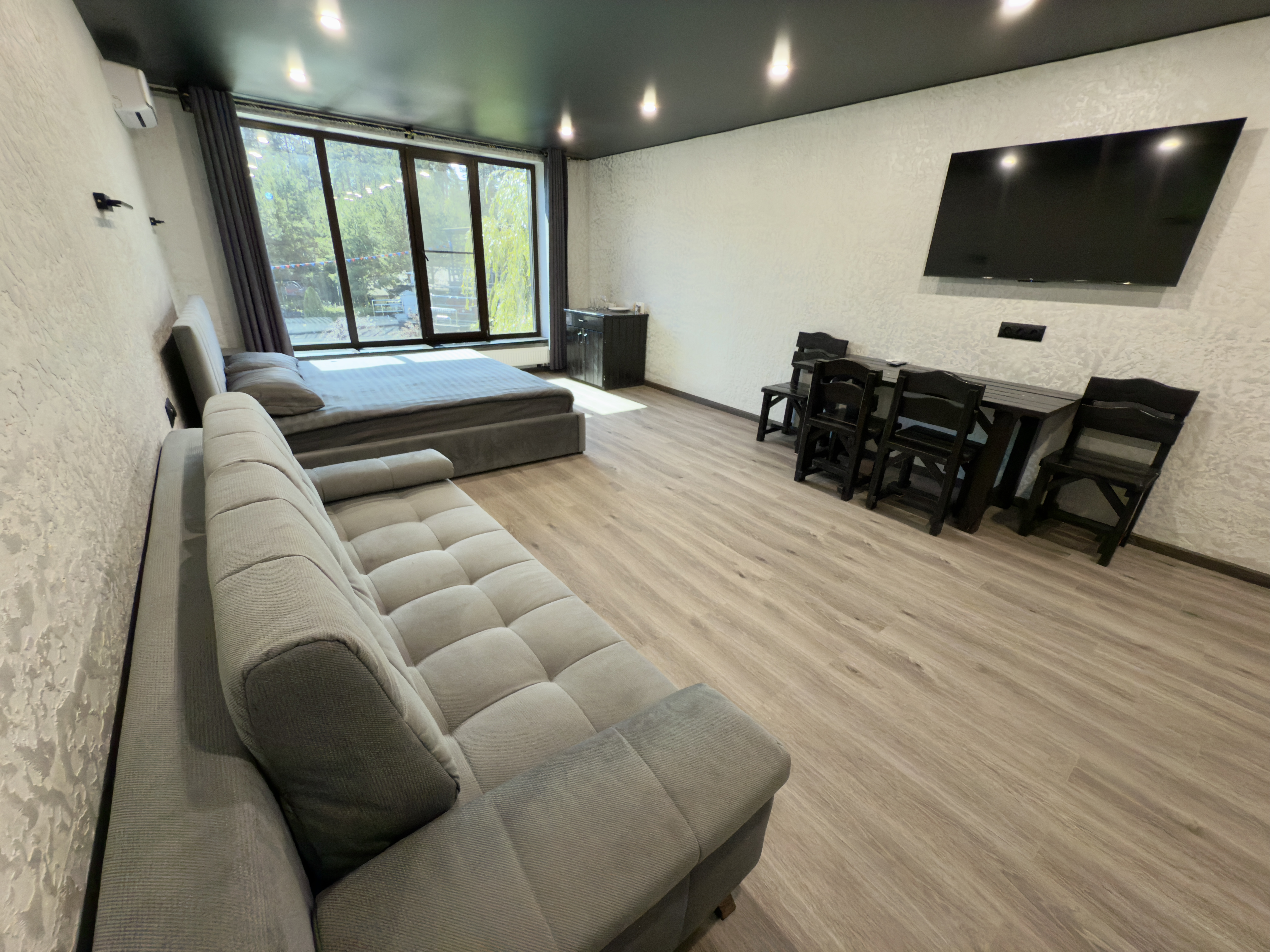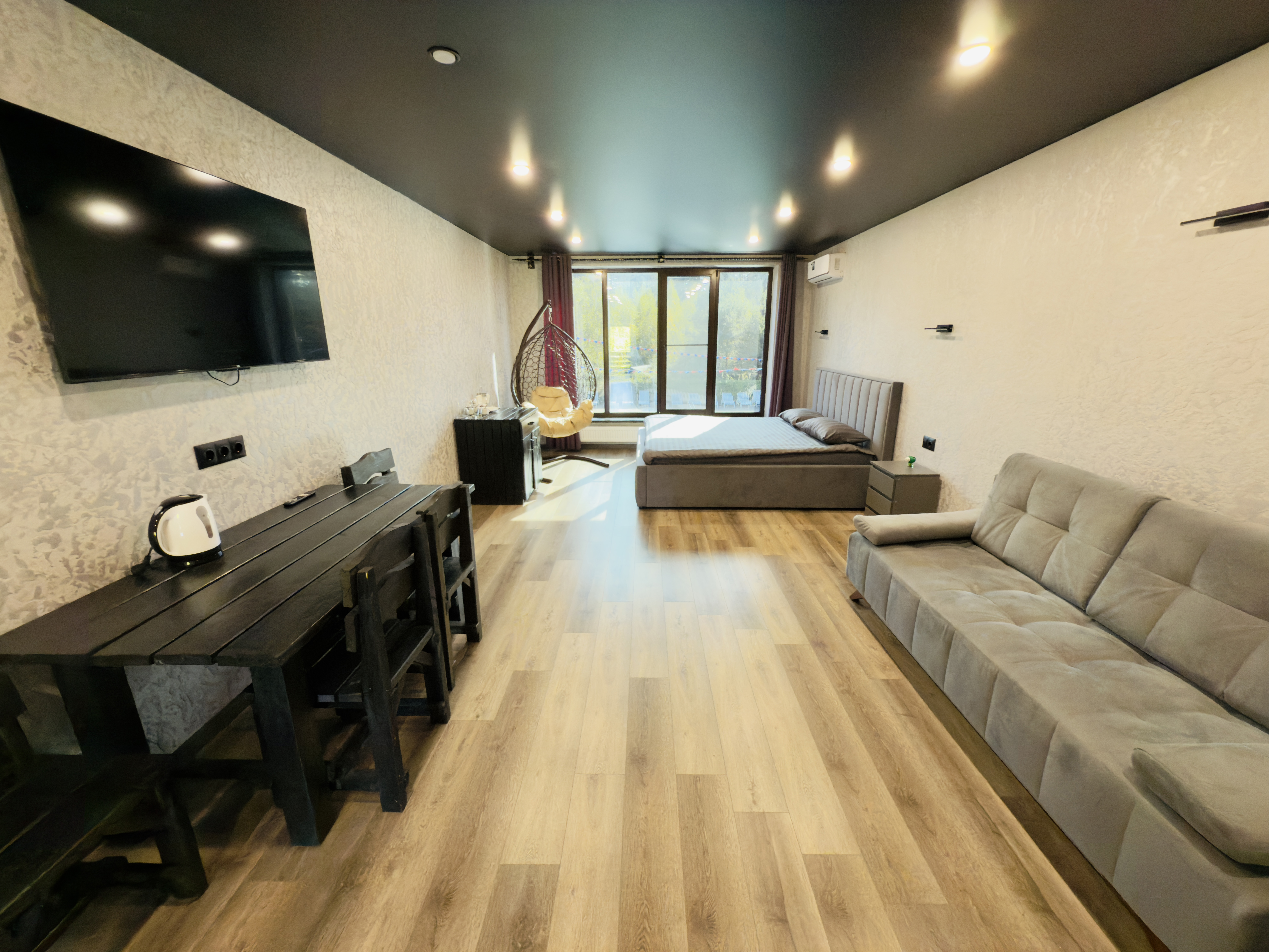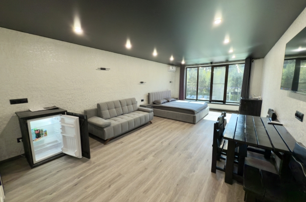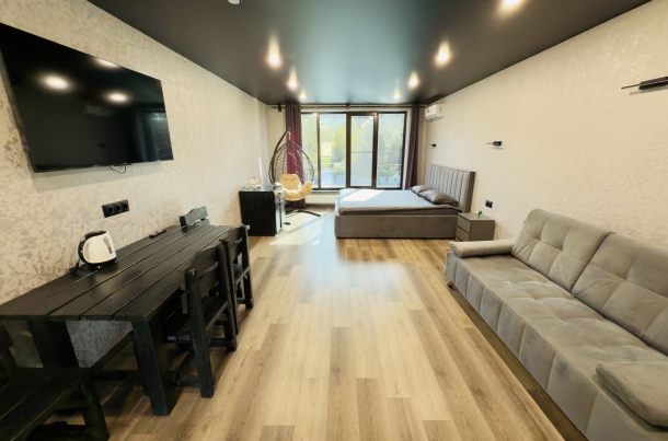 Мы продумали все до мелочей, чтобы ваш отдых был ничем не омрачен. После насыщенного дня вас ждет комфортная кровать, которая подарит полноценный сон. А утренний кофе у панорамного окна станет вашим любимым ритуалом, заряжающим энергией на весь день.